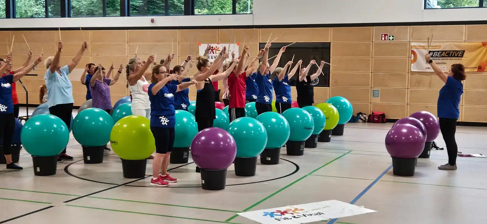 Willkommen bei Drums Alive, der rhythmischen Fitness-Sensation des TV 1900 Hüttigweiler! Unsere Abteilung lädt dich ein, Bewegung und Musik auf einzigartige Weise zu erleben. Mit Trommelstöcken und großen Gymnastikbällen trommeln wir im Takt zu mitreißender Musik – ein Workout, das nicht nur den Körper, sondern auch die Seele in Schwung bringt!